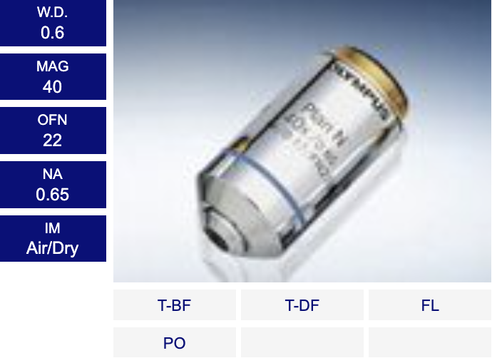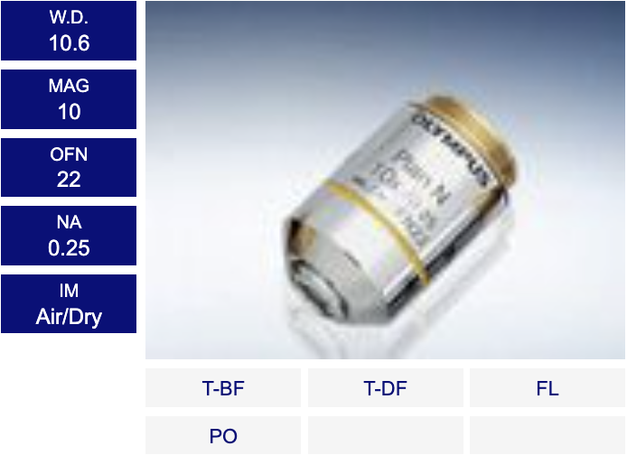 良好なフラットネスを実現した高品質対物レンズです。蛍光、透過明視野観察が可能です。暗視野に対応したタイプもあり、検査利用に適しています。