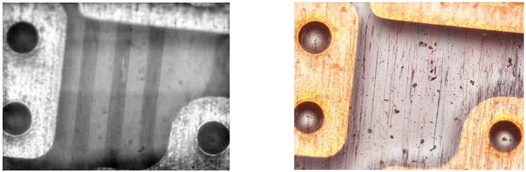 近赤外観察では、明視野では観察できない銅箔層(下地)が観察できる