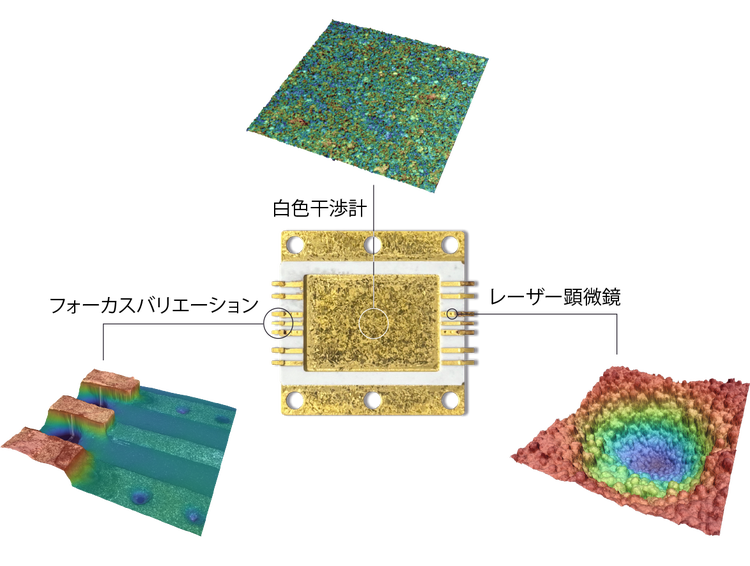 3つの表面計測技術で撮像されたRFパッケージ。