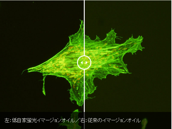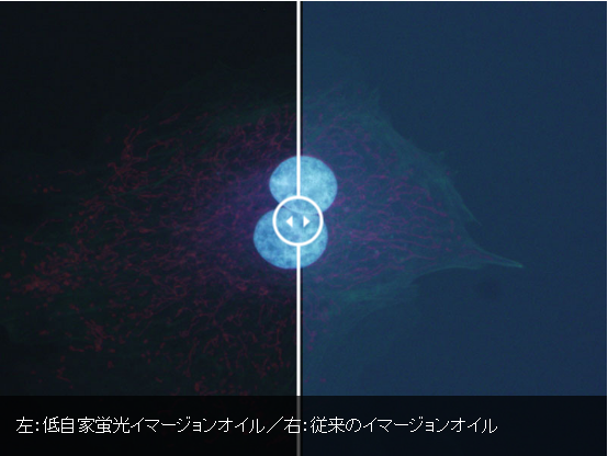 左:低自家蛍光イマージョンオイル/右:従来のイマージョンオイル