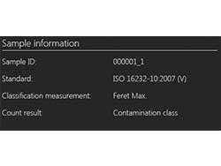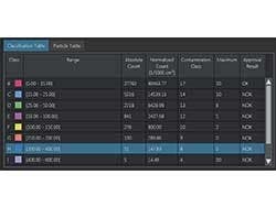 レポートには、工業規格に準拠したクラス分類に基づいた検出粒子数など詳細結果の出力も可能です。