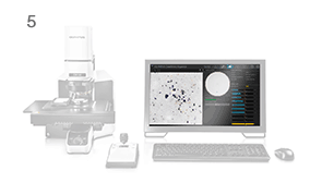 検査プロセスに特化したユーザーインターフェース。サンプルをセットしたら顕微鏡に触れる必要がなく、検査開始から異物のレビュー、レポート出力までソフトウェアだけで最小限の操作で行えます。