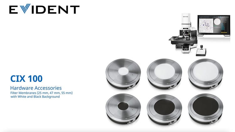 OLYMPUS CIX100 기술 청정도 검사 시스템은 직접 액체 여과를 수행하기 위한 전용 샘플 홀더를 제공합니다.이러한 샘플 홀더는 응용 분야에 적합하도록 직경 25mm, 47mm 및 55mm의 흰색 또는 검은색 배경으로 제공됩니다.