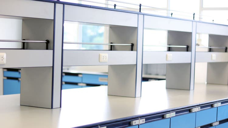 단순 현미경을 배치하는 깨끗하고 안전한 실험실 벤치의 예