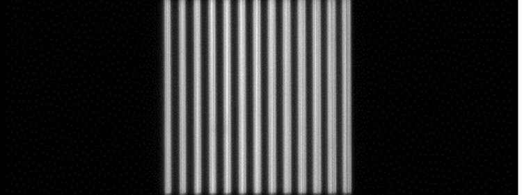 그림 2.16개의 형광 패턴 중 2개가 각 Argolight HM 슬라이드에 통합되어 있습니다.왼쪽 이미지: 이미지 평탄도 검사를 위한 링 패턴 필드.오른쪽 이미지: 해상도 검사를 위해 서서히 간격을 넓힌 선(수직) 패턴.