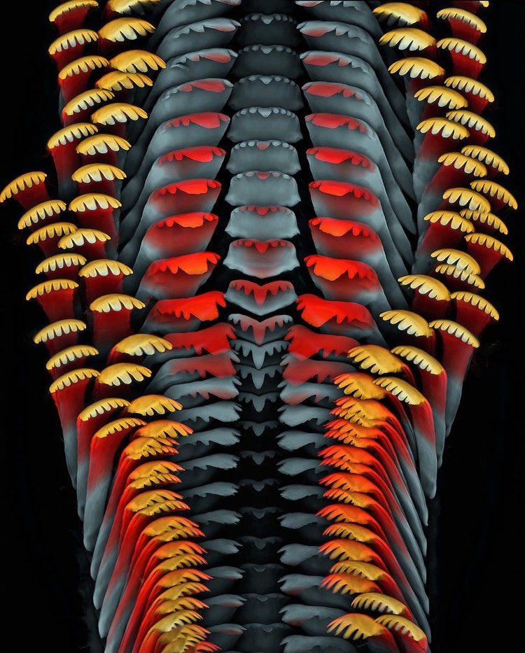 달팽이의 혀(컨포컬 스택의 깊이 색상 코드 지정 투사). 이미지 촬영자: Igor Siwanowicz.
