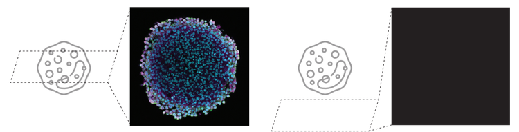 Figure 4. 공초점 레이저 주사 현미경에서 샘플 검색의 높은 어려움으로 인해 빈 화면(오른쪽 이미지)이 발생할 수 있습니다.