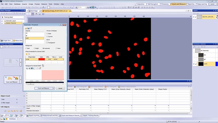Rather than using fluorescence images to detect and count nuclei, deep-learning technology can count the nuclei using simple transmitted images, with no staining. This cellSens tutorial video shows you how to use cellSens software’s deep-learning technology for label-free nucleus detection.