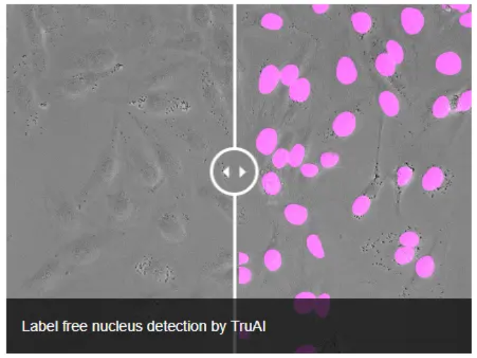 - TruAI™ 딥러닝 분할 분석을 통한 실험 효율 개선으로 라벨 없는 핵 검출 및 세포 계수를 제공하세요.