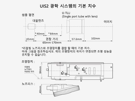 광학 구성 요소에서 튜브 렌즈와 대물렌즈 사이의 이격 거리는 조명의 균일성과 이미지 품질에 영향 없이 성능을 유지하기 위한 65~170mm 사이입니다.