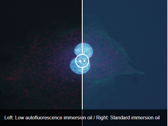 Left: Low autofluorescence immersion oil / Right: Standard immersion oil