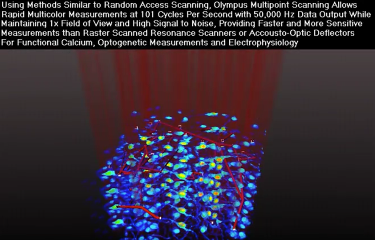 - FV4000의 685nm, 730nm, 785nm 다이오드 레이저를 사용하여 가시 레이저에 비해 훨씬 더 깊이 있는 이미지를 획득할 수 있습니다.