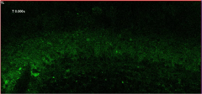 GCaMP6f를 발현하는 급성 후각구 슬라이스를 SeeDB-Live로 클리어링한 실시간 영상입니다. 이미지는 LUPLAPO25XS 대물렌즈를 사용하여 표면에서 120 µm 깊이에서 획득되었습니다. 샘플 제공자: 후지모토 사토시 박사, 이마이 타케시 박사 또는 후지모토 사토시 및 이마이 타케시 박사 이나가키 시게노리와 이마이 타케시, Graduate School of Medical Sciences, Kyushu University.