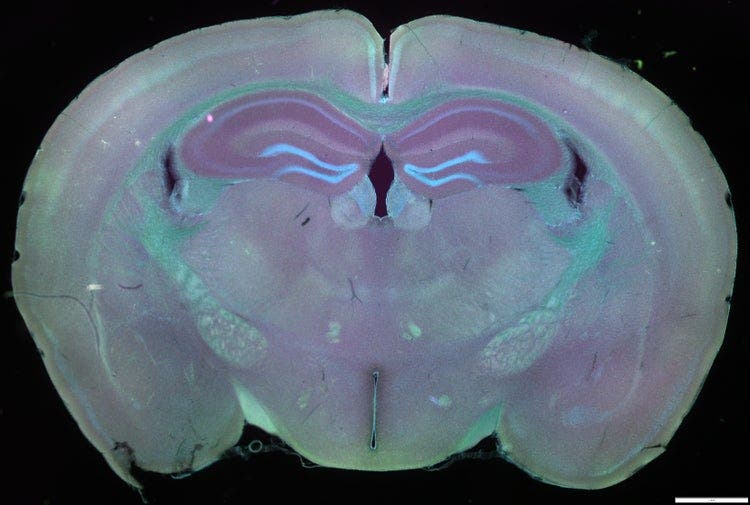 전체 뇌 슬라이스 - 2배율의 1x2 스티칭 이미지
