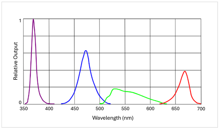 세 가지 모듈로 구성된 완전한 U-FLLED 시스템. 왼쪽에서 오른쪽으로: U-FLLEDR(딥 레드), U-FLLED(블루/그린), U-FLLEDUV(자외선).