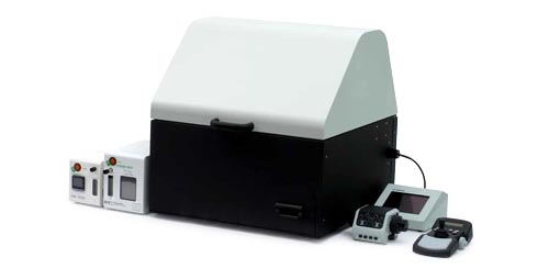 图1.化学发光钙离子传感器GeNL(Ca2+)_520执行器操作(左)和基于IXplore Live系统的发光成像系统示例(右)