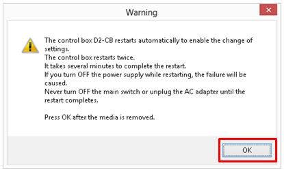 (5) Please confirm well the following message, then click “OK”. D2-CB will reboot once.