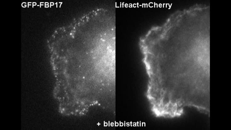 长时程TIRF成像,观察质膜与FBP17蛋白之间的聚合与解聚作用。