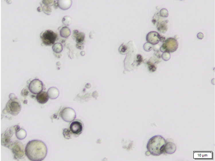 奥林巴斯Stream/PRECiV中褐煤灰飞灰原始图像(左),使用传统阈值处理方法进行图像分割(右)。