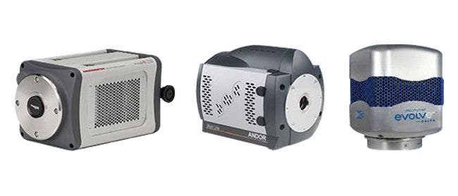 电子倍增CCD摄像头放大光信号时不会增加噪点。它们可以捕获暗淡样品的高速图像,并且在激发光强度降低的情况下进行荧光活细胞成像时表现出色。它们用于观察细胞内的蛋白质相互作用以及用于实时成像。
