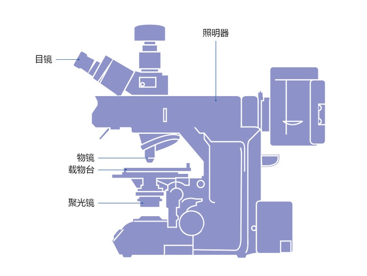 尽管每台显微镜根据型号、类型和用途拥有不同的配置,但您可从任意一台显微镜中找到具有相同功能的部件。 其中包括: