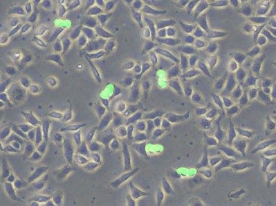 表达FUCC(CA)生物传感器的hES细胞。图像承蒙英国伦敦Francis Crick研究所的Silvia Santos博士提供。