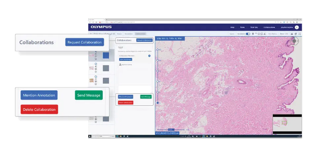 - 专为简单的协作共享而设计:可在您的安全网络内与病理学家和专家轻松地共享玻片图像。