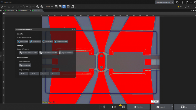 简单易用的 PRECiV™ 软件使您能够控制您的工业显微镜,以便在生产、质量控制和检验操作中进行重复的 2D 测量。