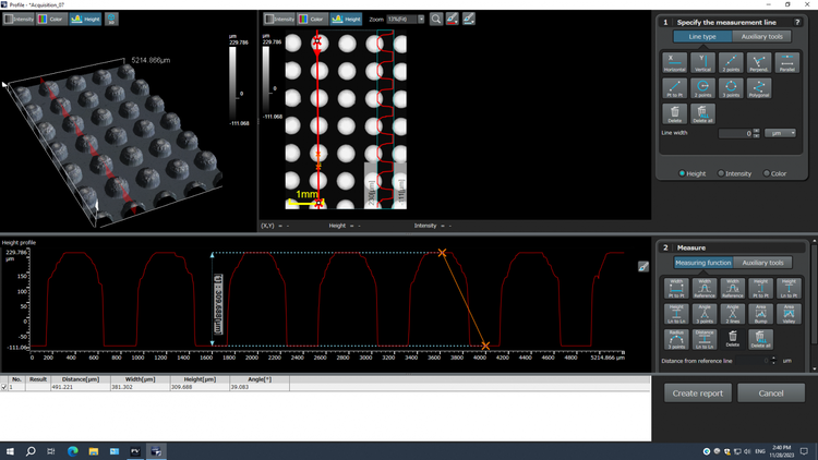 PRECiV DSX可对所有带高度信息的图像进行简单的3D测量(线轮廓)。对于高级测量(表面粗糙度、体积测量),PRECiV DSX可将图像直接导出到3D分析应用程序,以便进一步处理和分析。