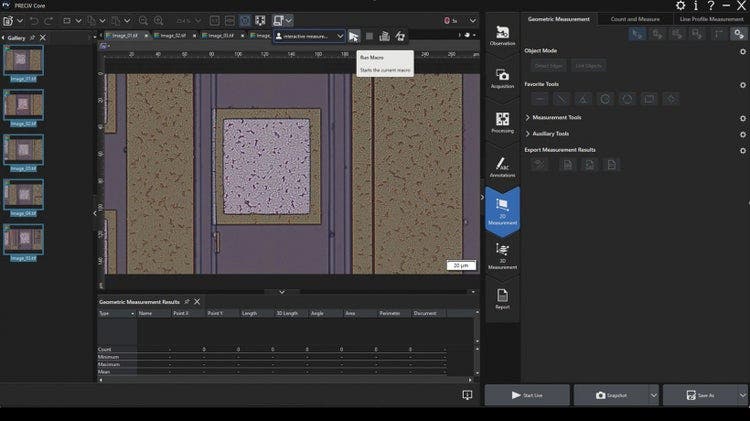 PRECiV软件可对实时或记录的图像进行精准、可重复的2D/3D测量和分析。该软件为您提供了进行复杂几何测量的工具,以应对生产和检测方面的挑战。